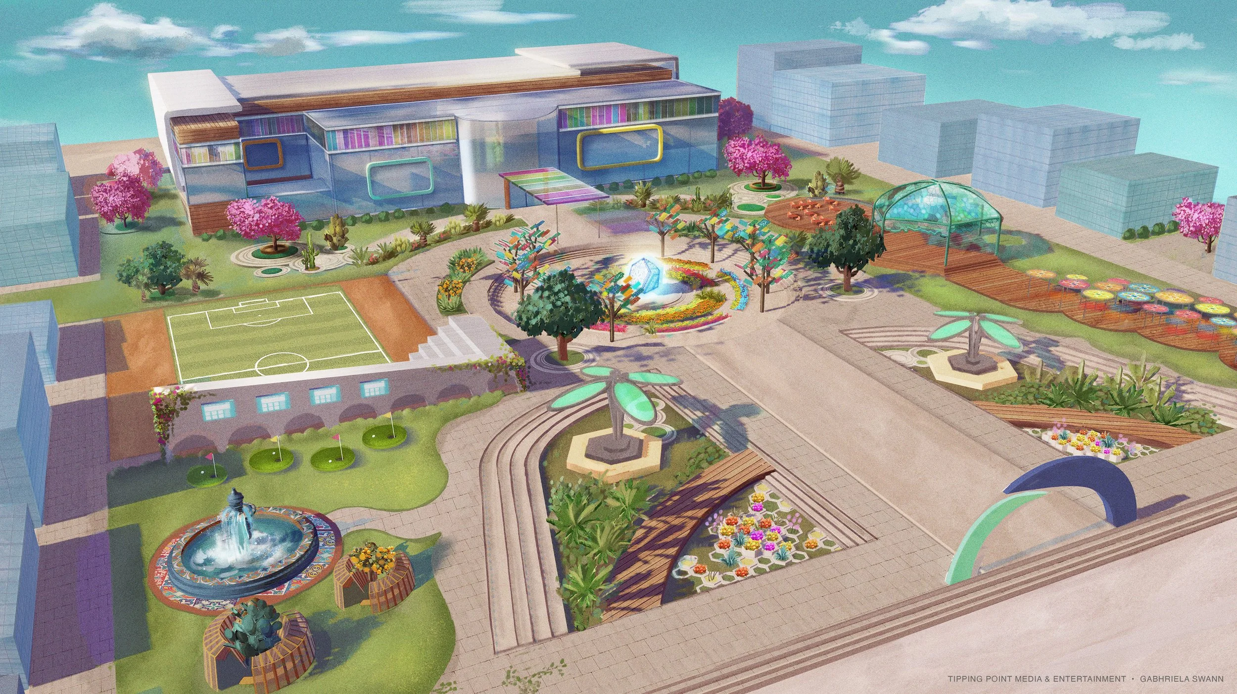 Lead concept artist for interactive Metaverse platform developed by Tipping Point Media & Entertainment. Conectado brings together individuals, educational institutions and corporations. The main building hub is where players can connect, create and play; featuring educational sponsorships, virtual lectures & more.